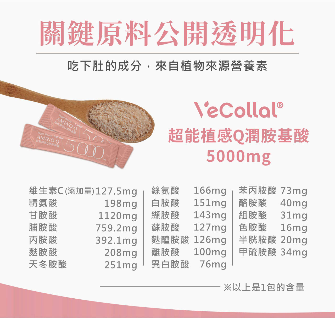 • 植物來源-來自比利時 VeCollal® 植物胺基酸