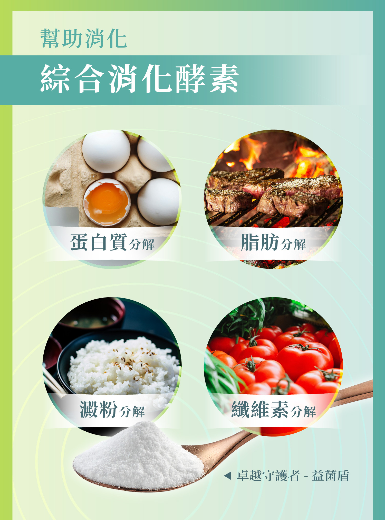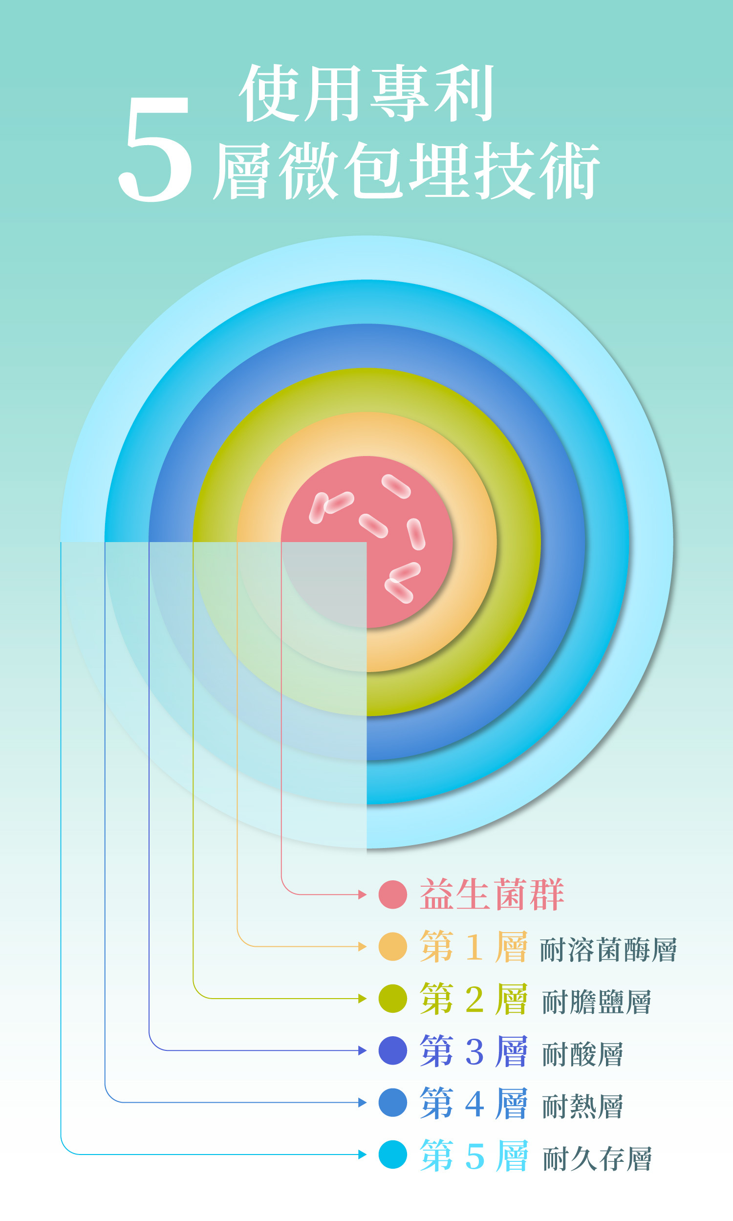 益菌盾所使用納豆芽孢菌、KT-11後生元及專利五層微包埋益生菌,耐熱、耐酸、耐鹼,因此可在三餐飯後食用。