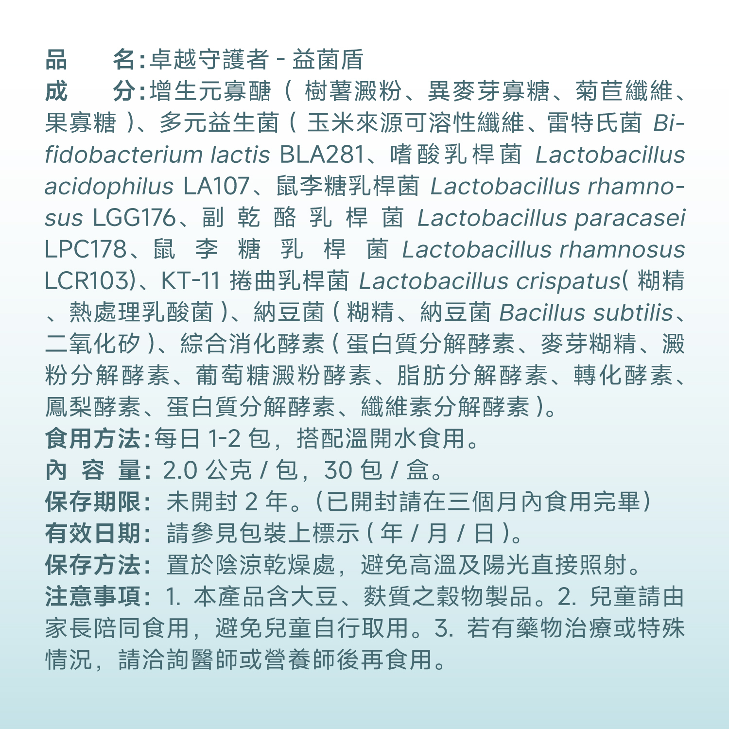 *益菌盾為粉末,指導兒童及老人吞嚥時須注意。